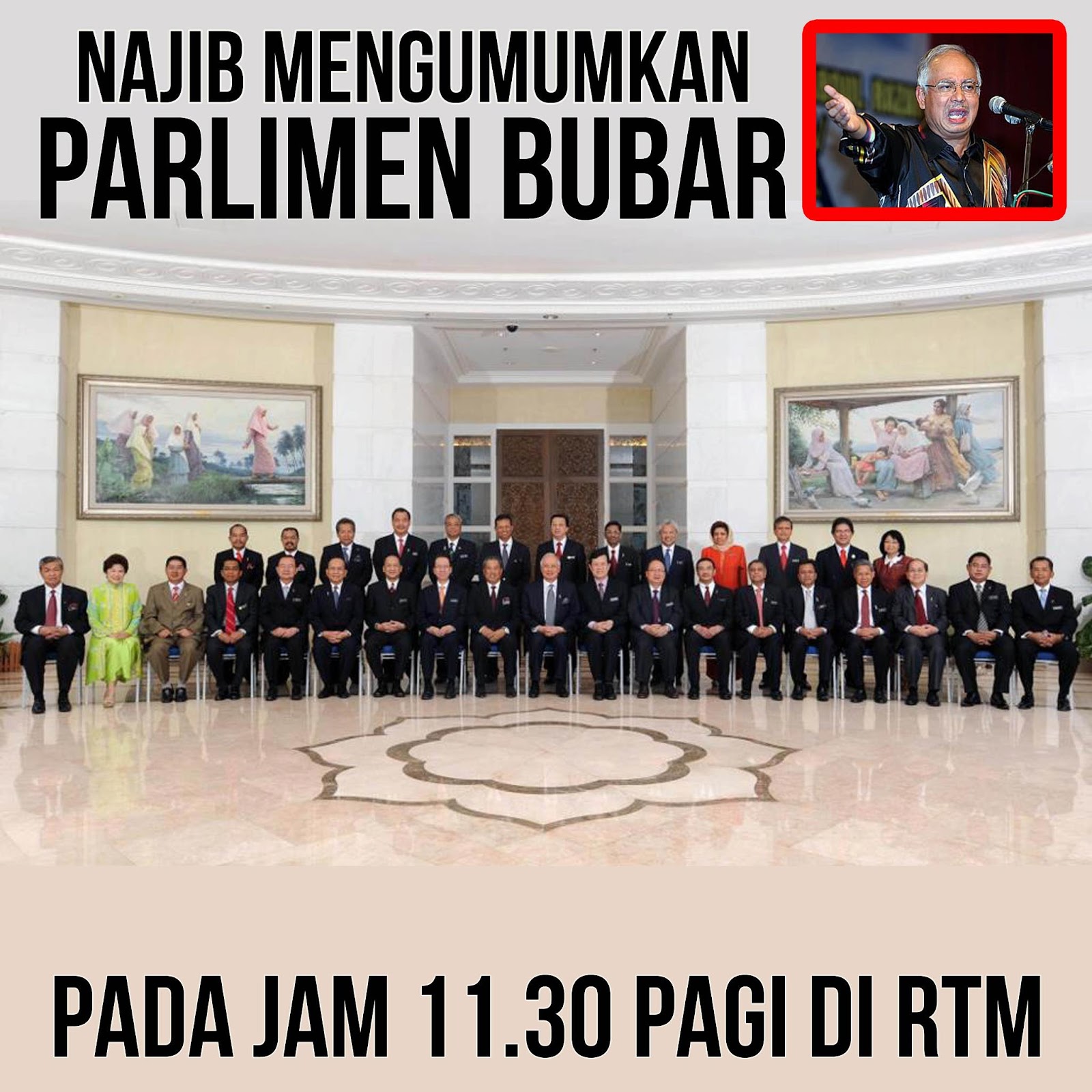 Tahniah Malaysia, penantian memang satu penyeksaan namun berakhir hari ini. Perdana Menteri Datuk Seri Najib Tun Razak telah secara rasminya pengumumkan pembubaran Parlimen hari ini Khamis, 3 April 2013, 11:30. 3 APRIL adalah ulang tahun ke empat Najib sebagai Perdana Menteri Malaysia, dan memberi laluan pilihanraya di adakan secara serentak di seluruh negeri.